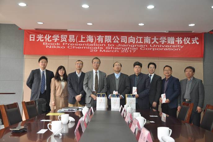3月29日上午,日光化学贸易(上海)有限公司董事总经理大井幸一先生一行代表日本日光集团向江南大学赠送了日文原文版、英文版以及中文版《最新化妆品手册》一书。此书的中文版翻译工作由江南大学化妆品与皮肤健康护理研究中心董伟、范旭两位老师完成,中心曹光群主任、化工校友李金华博士等负责全文审稿,全书分两卷共一千多页。